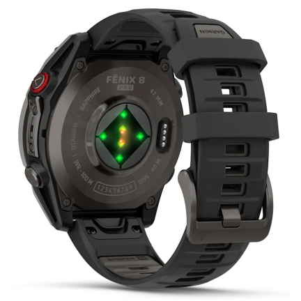 Garmin Fenix 8 Pro - 47 mm, AMOLED Sapphire, Carbon grey DLC titanium with Black/pebble grey silicone band (010-03198-01)